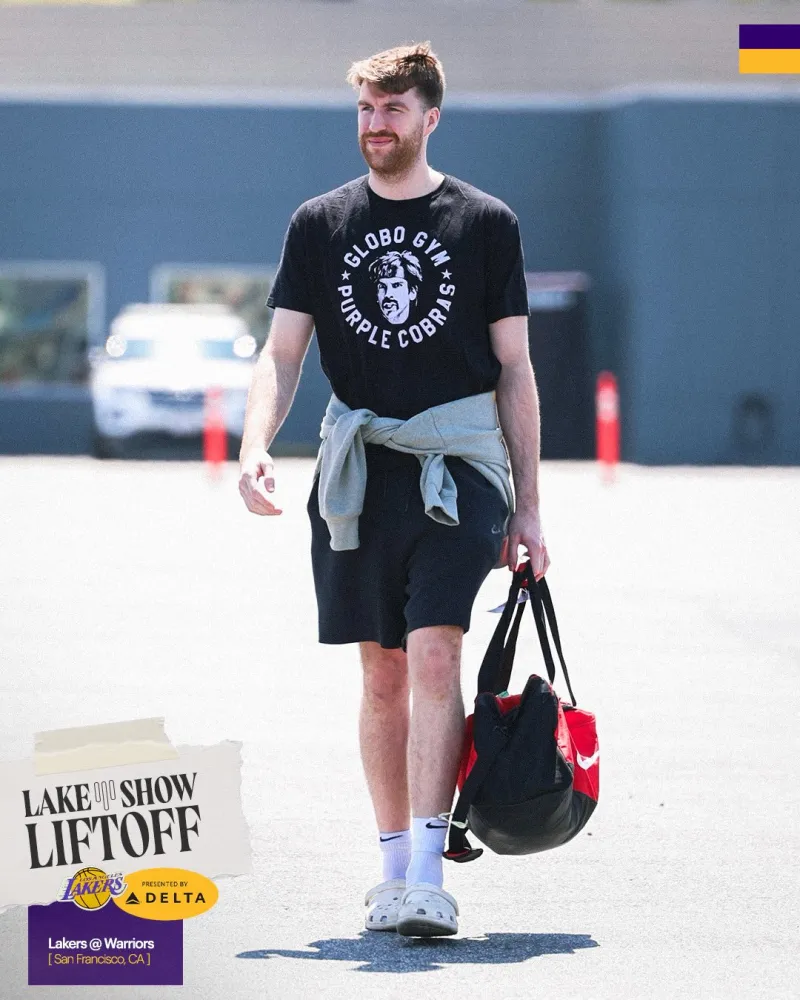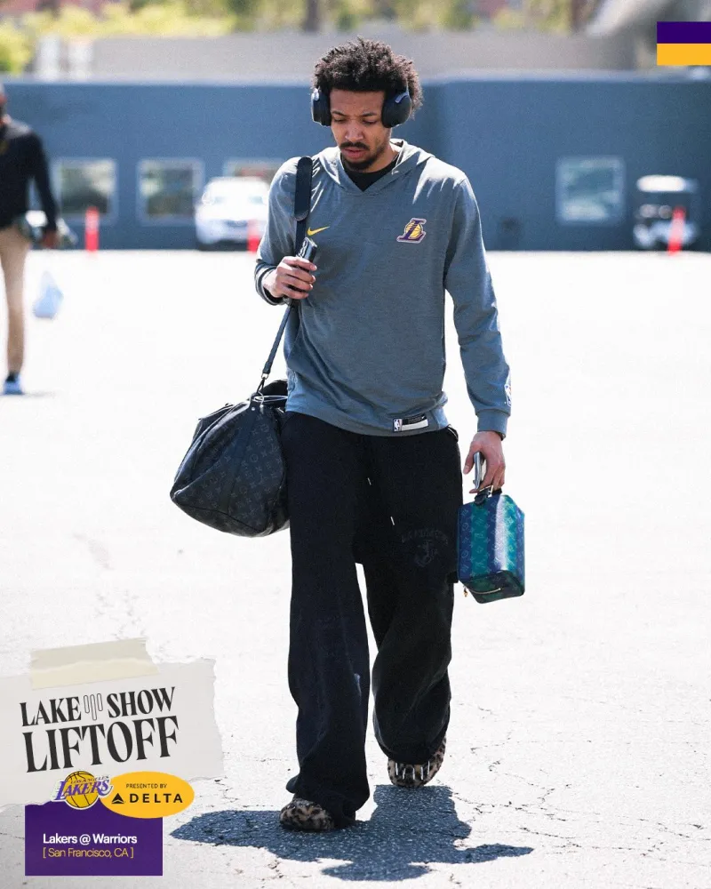 赛前,湖人社媒分享球员奔赴金州的登机组图,勒布朗-詹姆斯等球员出镜。